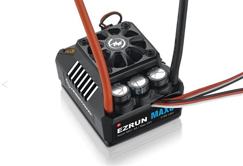 Hobbywing EzRun Max6 er vandtæt og designet til biler op til 1/6 skala og 8S lipo. Leveres uden kontakter, men 20cm ledninger er inkluderet. Motorens kontakter på controlleren er 6,5 mm. Understøtter alle Hobbywings programmeringsbokse.