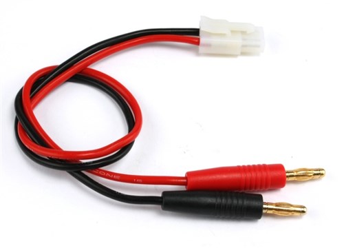Standard ladekabel til batterier med Tamiya-stik. 4 mm bananstik i den ene ende og Tamiya-stik i den anden. Ledningen er 30 cm langt 16AWG silikonkabel.