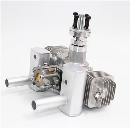 Fantastisk to-cylindret motor på 40CC, perfekt til skalamodeller og lignende, hvor du vil have den specielle lyd fra en flercylindret motor, og at sådanne motorer har mindre vibrationer end cylindrene. Motoren leveres med to enkle potter, tændingssystem, færdig på monteret motorophæng og brugsanvisning. Den vejer 1500 gram med gryder og tændingssystemer. Motoren trækker en 20x10 propell ved 6800 o / min.