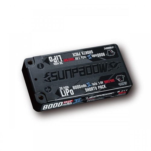 Sunpadow 1S 8000mAh 50C / 100C burst. Hardcase lipo pack med høj C rating, som giver god ydeevne til både løb og hobbybrug.