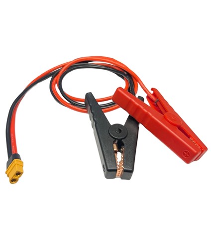 Kabel med solide krokodilleklemmer til tilslutning til bilbatteri eller lignende. Udstyret med et XT60-stik, der passer til opladere eller strømforsyninger med XT60-indgang. Kabellængden er 1 meter, med en kabeltykkelse på 12AWG.