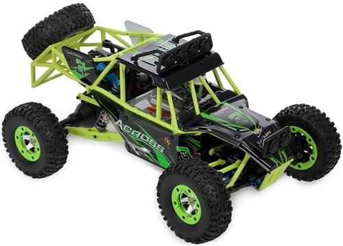 WLToys Rock Racer i 1/12 skala med 4WD, bilen kombinerer god tilgængelighed med holdbarhed og god topfart. Leveres komplet med genopladeligt LiIon batteri og 2,4G ratradio. Bilen er 38 cm lang og har en tophastighed på op til 40 km/t. Der medfølger en oplader, så det eneste der skal til herudover er 4 AA batterier til radioen.