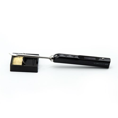 Sequre SQ-001 er en lille, men kraftig loddemaskine. Kræver 12-24V input og kabel til tilslutning af batteri med XT60 stik inkluderet. Strømforsyning kan købes separat. Loddejernet justeres digitalt via OLED-skærmen og er også programmerbar og opgraderbar via Micro-USB-interface. Ved 12V får du 17W strøm og når 300 grader ved 40erne, ved 24V får du 65W strøm og 300 grader nås ved 11s. NB Leveres kun i sort og med BC2 tip.