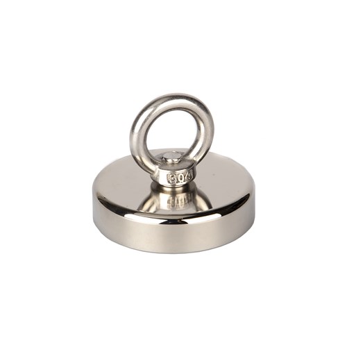 Supermagnet til magnetisk fiskeri med 160 kg løftekraft. Magneten er forniklet og leveres med en monteringskrog i rustfrit stål. Vi anbefaler at bruge reb fra 10-30 meter med en karabinhake i enden, gevindlim til kroge og handsker. Se under anbefalet tilbehør.