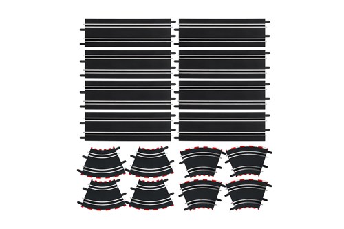 Every committed Carrera fan cherishes and cares for their race track, which has been built with love and is constantly growing. To make it even better, bigger and more exciting, you can expand your Carrera DIGITAL 143 race track with new features and more track sections. With this extension set on a scale of 1:43 you get eight straight sections with a length of 342 mm, four 1/45° corners and four 1/45° steep corners. At the 45 degree incline corners, there are supports to give the steep corner the necessary stability. Use this set to re-design your race track and add new parts. Above all, the steep corner above the ground will give you and your vehicle a new driving feeling that keeps the fun factor alive and kicking.