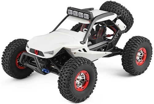 WLtoys Desert Racer tilbyder fart og sjov med firehjulstræk og en topfart på op til 40 km / t. Bilen har også LED-lys, reservehjul og push-rod affjedring foran. Leveres komplet med 2,4 GHz radio, brugervejledning, batteri og USB-oplader, og bilen er klar til at blive kørt ud af kassen. Alt hvad du behøver er AA-batterier til radioen.