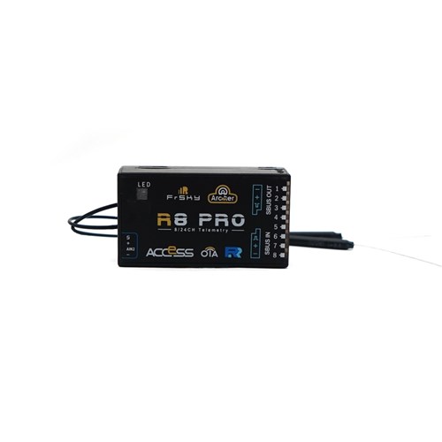 Frsky R8 Pro er en 8-kanals modtager, der let håndterer støj fra antændelses- og forbrændingsmotorer. Kan også bruges som en redundansmodtager sammen med andre FrSky ACCESS-modtagere med SBUS-port.