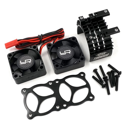 Double fan heatsink for 540 motors! For heavy duty applications such as offroading or even high speed on-roading! Pre-soldered wires means that theres only one slot required to power the two fans.