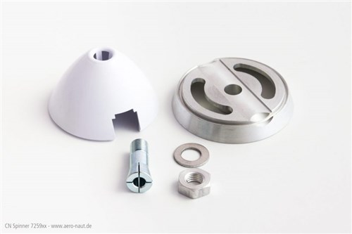 Precision spinner with aluminum back plateWhite plastic capClamping cone M8