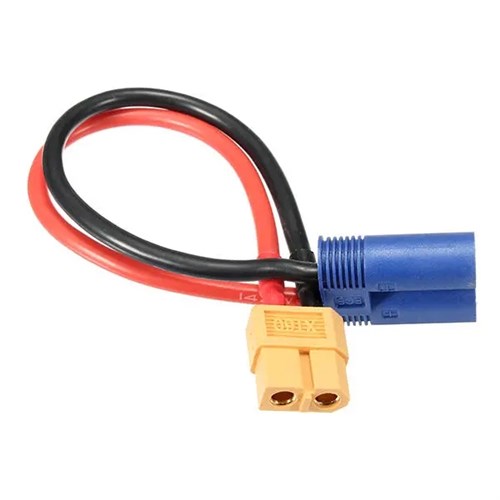 Overgang fra EC5 til XT60. 18 cm kabellængde. 14AWG. For at kunne oplade EC5 batteri i XT60 oplader.