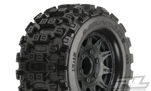 This is a pair of pre-mounted Badlands MX28 2.8? Tires on Raid Removable Hex Wheels. Pro-Line is very excited to announce the availability of the Badlands MX 28 2.8" tire pre-mounted to the Raid Black Removable Hex wheel! Pro-Line is taking the 2.8" tire game to the next level with the Biggest and Baddest tire ever conceived: the Badlands MX28! Pro-Line Badlands tires are known for having sweet Motocross inspired tread and the Badlands MX28 tires kick that up a notch with a Bigger and Bolder knobby tread that matches modern MX tire design.