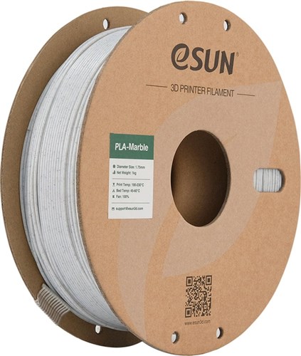 eMarble fra eSUN er PLA med ekstra farve for at få en marmoreffekt. Glødetråden er let at udskrive med og giver glatte og fine overflader, lille mulighed for krympning og lidt snor.