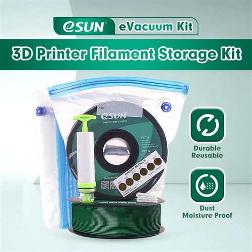 Glødetråden skal holdes tør, når den åbnes og ikke bruges. Den bedste måde at opbevare den på er i et vakuum. I dette sæt får du alt hvad du behøver for at vakuumpakke filamentruller. Pumpe, 10 vakuumposer og 15 fugtighedsindikatorer er inkluderet.
