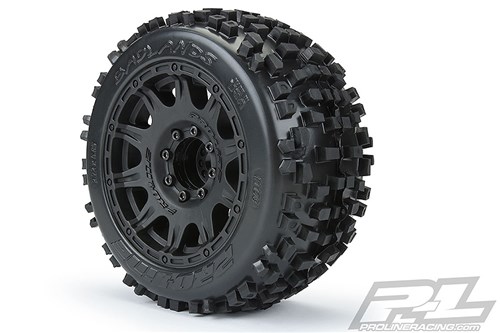 Dæk og fælge til biler som E-Revo 2.0, Summit, Tekno MT410, Arrma Kraton og andre Monster trucks med 17 mm sekskant.