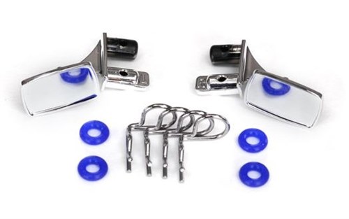 TRX-8133 Side Mirrors Chrome TRX-4 Blazer passer til Traxxas Body TRX-8130. Pakken inneholder 2stk speil, 4 pakninger og 4stk klips.