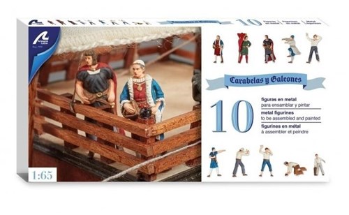 Give to the caravels and galleons ship models even more realism: a set of 10 metal figurines of the crew members 1/65 scale, ready to be assembled and painted. Figures measurements: from 0.984 (25 mm) to 1.181 (30 mm). The figurines kit includes the following characters and ranges:
