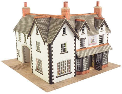 Kro med klassisk pub, baghave og klare vinduer, der passer ind i enhver gammeldags eller moderne by. I sættet får du et udvalg af forskellige skilte.