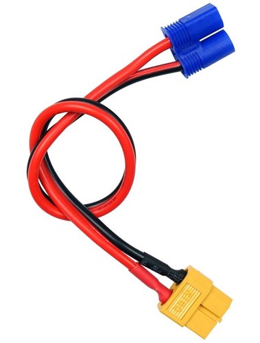 Ladekabel med EC3 til XT60 stik. Anvendes til opladning af batterier med EC3 stik, og tilsluttes direkte til opladere med XT60 tilslutning.