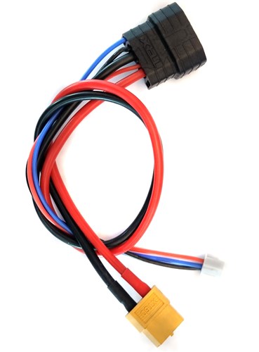 Ladekabel med Traxxas ID2 til XT60 stik. Anvendes til opladning af batterier med Traxxas ID2 stik, og tilsluttes direkte til opladere med XT60 tilslutning.