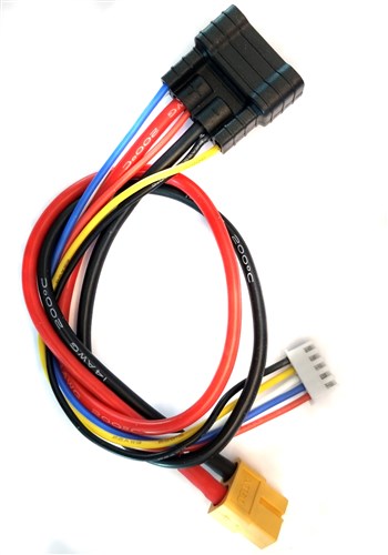 Ladekabel med Traxxas ID4 til XT60 stik. Anvendes til opladning af batterier med Traxxas ID4 stik, og tilsluttes direkte til opladere med XT60 tilslutning.