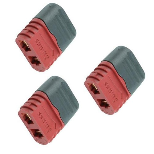 Pakke med 3 brontoT-type hunstik. Også kendt som Deans-stik. Ny dekankontakt, der er blevet forbedret på mange punkter, mens kontakten stadig er kompatibel med almindelige dekankontakter. Den største forbedring er måske stikdækslet, der gør, at du undgår at krympe sokker på ledningerne. Før ledningerne gennem stikdækslet og lod dem til stikket. Koblingsdækslet klippes derefter ind i muffen, og du er færdig.
