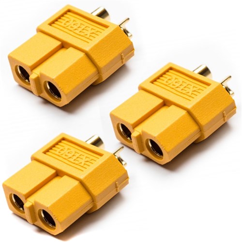 Pakke med 3 bronto XT60 hunstik. Den type, der bruges på batterisiden af stikkene.