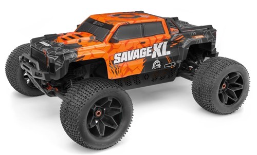 Heftig Savage i lys orange farve med mørke detaljer og rå elektronik. Kombinationen af 6S børsteløse kræfter og et stabilt og langt chassis giver dig mulighed for at køre langt ud over grænserne og samtidig have kontrol. Savage X Flux som er lillebror er stor, denne er endnu større! Med så stor en bil, rå og vandafvisende elektronik er der få forhindringer i naturen, der kan stoppe det. Bilen leveres færdigbygget med elektronik, og du skal bruge 2 ens 2-3s LiPo batterier med Deans stik, kompatibel oplader og 4xAA batteri til radioen.