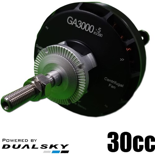 Dualsky GA3000.5 er en børsteløs motor, der bruger 6S LiPo, 100-120A esc og 19-20 tommer propel. Passer til sportsfly op til 7,5 kg og 5 kg 3D-modeller. Svarer til 30-35cc benzinmotor.
