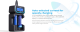 Oplader til 14500-26650 Li-Ion og 1,2v NiMh og NiCd batterier. På denne oplader kan du vælge ladestyrken til begge porte som enten er 0,5Ax2, 1Ax2 eller 2Ax1. X2 oplader et 2500mAh 18650 1,5h batteri ved hjælp af 2A opladningsstrøm.