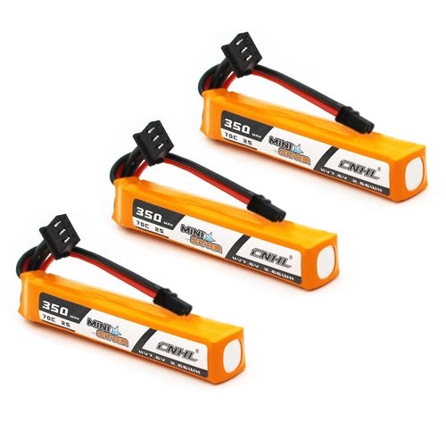 3 stk. 2S 350mAh-70C-CNHL MiniStar med XT30 stik. Vægt 18g. 2s LiPo.
