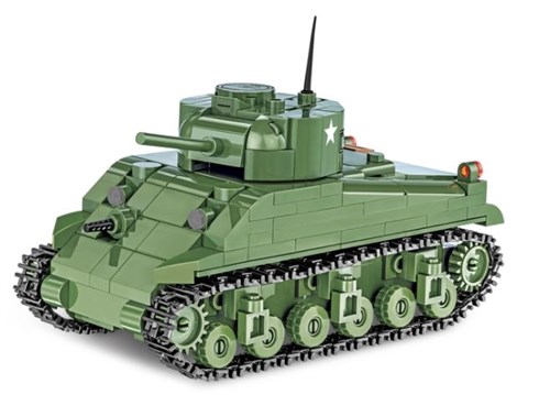 Byggesæt af M4A1 Sherman, en amerikansk tankikonmodel i skala 1:48. Sættet består af 312 dele og har et bevægeligt tårn. Cobi klodser er kompatible med legoklodser.