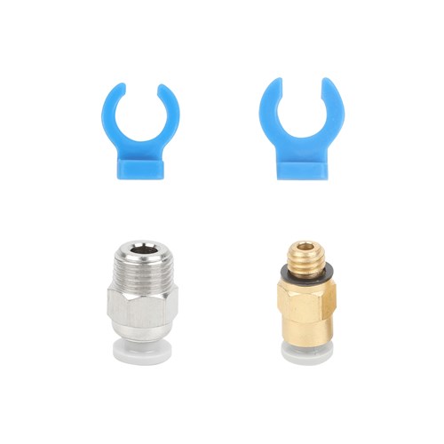 Indeholder rørforbindelse push-fitting til ekstuder og hotend, samt clips til begge sider. Passer til de fleste Creality-printere.