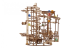 The Marble Run Spiral Hoist is the fourth model in the Ugears collection of fascinating DIY wooden mechanical marble runs. The hoist has two types of rails to speed the ascent: the main spiral rails and vertical rails. Turn the crank to lift the colored glass marbles upwards (one marble rises per nine revolutions of the winding crank) to the three-marble storage up top. From there the marbles begin their downhill runs through exciting elements: a high-speed slide, a vertical snake and a mountain river.
