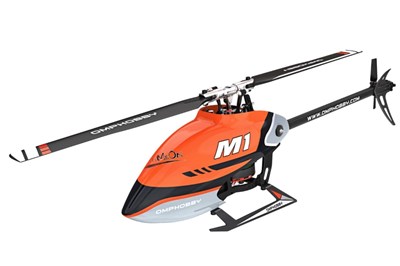 OMP Hobby M1 EVO Helikopter. Dette er BNF-versionen med en indbygget SFHSS-modtager, og den kommer med et drevbatteri. Helikopteren har en rotordiameter på 290mm og er en rigtig lækker lille 3D-maskine! Der er børsteløse motorer til både hoved- og halerotoren, og alt fra mekanikken til elektronikken er af god kvalitet, så her er det op til piloten bare at øve-øve-øve sig for at vise de barske øvelser frem!