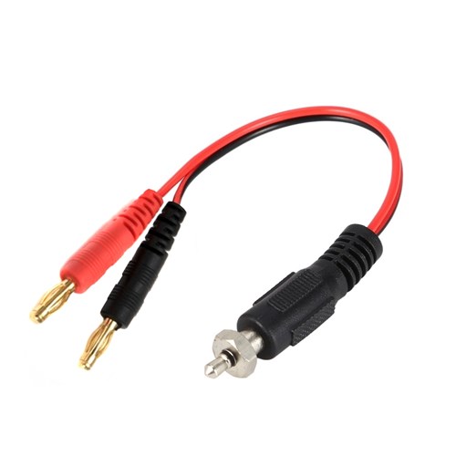 Ladekabel med gløderørsadapter til 4mm stik. Anvendes til opladning af gløderør, og sættes direkte i opladere med 4 mm tilslutning.