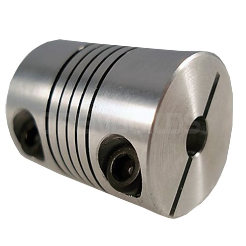 Fleksibel kobling 1/4 tomme mm x 8 mm. Lavet til 8 mm aksel på den ene side og 1/4 tomme mm på den anden. Længde 25 mm. Udvendig diameter er 20 mm. Fremstillet i aluminium.