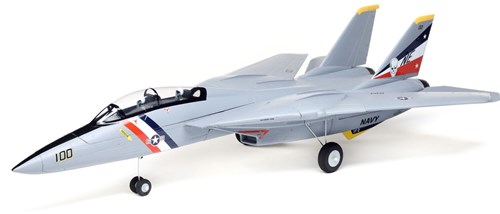 Many RC pilots have dreamed of flying an F-14 one day ? and the E-flite® F-14 Tomcat Twin 40mm EDF makes that dream a reality! It arrives fully-assembled and nearly ready to fly right out of the box including a factory-installed receiver with exclusive Spektrum? AS3X® and optional-use SAFE® Select technologies. Its ready to bind to your 6+ channel DSMX®/DMS2® equipped computer transmitter, plus youll receive real-time telemetry data including battery voltage, current, motor RPM and more via compatible Spektrum AirWare? equipped radios. The twin 40mm fans and brushless outrunner motors are compatible with affordable and common 4S 2200mAh 30+C batteries to deliver an excellent blend of performance and flight times. Full-flying stabs and functional 3-position variable-sweep wings deliver an incomparable flying experience you cant get anywhere else. The fully-molded EPO airframe is durable, lightweight, and factory-finished to pay tribute to the U.S. Navys VF-2 "Bounty Hunters" squadron. The fixed landing gear plus steerable nose wheel makes it easy to taxi, takeoff and land on smooth surfaces ? or remove the landing gear for more speed and vertical performance when hand launching over and landing on grass. With the F-14 Tomcat Twin 40mm EDF youre closer to being a TOPGUN than ever before!