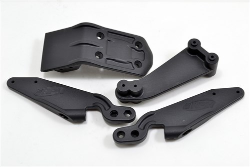 Included Rear Skid Plate: In order to make the toughest wing mounts, we had to devise a new structure to create a triangulated base of support. Our new rear skid plate incorporates mounting points for a vertical brace. The brace spans the distance between the wing mounts and the skid plate, creating an incredibly tough system. As an added bonus, the skid plate helps protect the rear end of that expensive chassis.