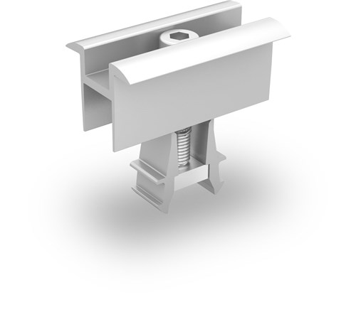 Universal mellemklemme fra K2 i aluminium med en simpel "klik" funktion til at fastgøre et solpanel med en rammehøjde på 30-42mm.