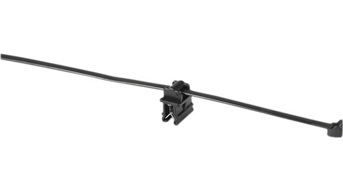 Kantclips med strips til kabelstyring på solpaneler. Den trykkes ganske enkelt med hånden på undersiden af solpanelrammen og holdes på plads af den integrerede metalklemme.