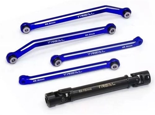 Treal Alu Extended Rear Link Kit Blue FCX24 giver dig 12 mm længere baglæns end originalen. Leveres med forlænget drivaksel.