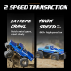 The SMASHER V2 adopts the FCX24 chassis. The huge hollow tires provide excellent shock absorption. The two-speed gearbox, controlled by the third channel, can not only provide strong torque, but also support high-speed off-road driving. The front and rear axles are equipped with planetary gear differentials by default, which is conducive to high-speed off-road driving, posture simulation and outstanding cornering performance. Meanwhile, straight axle parts without differentials are also provided for users to replace by themselves. When the straight axle parts are replaced, the differential function of the front and rear axles is lost but its climbing ability is completely released, and no matter whether it is rocks or mud, it can pass through powerfully. Of course, the hybrid solution of installing a straight axle on the rear axle and installing a differential on the front axle is also an option, which not only enables high-speed off-roading, but also retains a certain climbing ability.