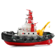 Med i pakken er selve slæbebåden og 2,4Ghz radiosenderen til den. Inkluderet med båden er et 2s 1800mAh Li-Ion drevbatteri og et 9V batteri til senderen. En USB-oplader følger med drevets batteri. En krybbe giver dig mulighed for at stille båden sikkert og pænt frem på hylden, når den ikke er i brug. Ydermere er der en række detaljer, der skal monteres på båden, såsom tårne, flag, fendere og brugsanvisning.Specifikationer