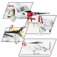 The COBI model of the Bell-Boeing V-22 Osprey was released under the license of the American manufacturer of combat helicopters, Bell Helicopter Textron. Developed in 1:48 scale to match the rest of the Armed Forces collection, the model consists of 1136 elements and includes two figures depicting the first test pilots in distinctive uniforms. The length of the model is 390 mm, the width is 500 mm! Completely new elements have been developed for the set, which make our model even better! Numerous detailed prints capture the look of the signature test paint. The most important functionalities of the model are the drive nacelles, which can be set in different positions, rotating rotor blades, opening cabin doors with stairs, access to the cockpit and the possibility of placing figures there, and an opening rear loading hatch.The whole set is complemented by a black reinforced block base with double supports and a black plate with the name of the set and the Bell logo.