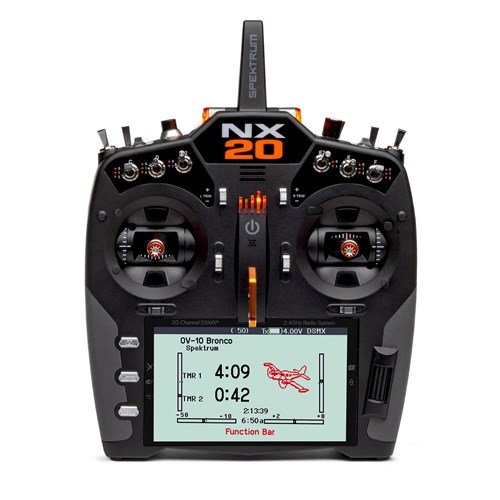 For advanced-level pilots who fly high-performance aircraft, the Spektrum? NX20 20-channel DSMX® transmitter provides the latest in innovative radio control. The NX20 includes an incredible array of exclusive technologies and advanced connectivity features that are seldom found in comparable 20-channel transmitters.