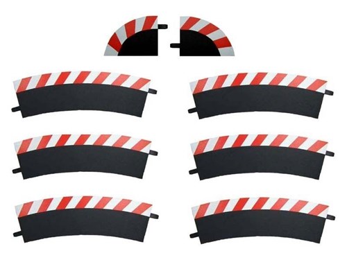 It doesnt matter whether you just want to bring a little more visual racing feeling to your track or whether you want to ensure more safety when drifting with your slot cars on a scale of 1:24: With these outside curbs you can have a great extension for your race track. The extension set contains six curbs, each with 2 end sections. They are suitable for 2/30° corners and on a scale of 1:24. The typical red-white paint is found on the world?s race tracks just before, on and after a corner. Thanks to the colours, the curbs can already be seen from a distance by the drivers. The extensions can be used for the race tracks Carrera DIGITAL 124, Carrera DIGITAL 132 and Carrera EVOLUTION.
