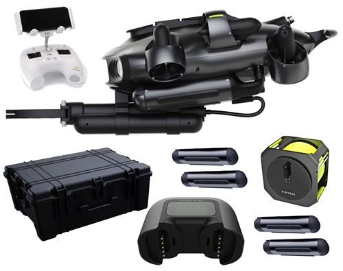 Fifish E-GO er en undervandsdrone med uanede muligheder. Med 360 graders omni-bevægelser har du ingen blinde vinkler, og undervandsinspektion bliver en leg. I denne pakke får du, udover ROVen med fjernbetjening, 200 meter kabel, 4 stk 72Wh batterier, energistation til batterierne, solid kuffert og gribearm. Batterierne er udskiftelige, hvilket gør det muligt at forlænge driftstiden efter ønske. Derudover er E-Go udstyret med en udgang til add-ons både over og under som giver dig mulighed for at tilpasse ROVen til dine behov med QYSEAs store udvalg.