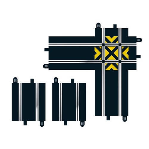 Har du lyst til endnu mere spænding på bilbanen? Med Scalextric Cross Roads Track-pakken får du en pakke, der indeholder 2 korte sektioner og et udfordrende kryds, hvor alt kan ske! Passer til digitale og analoge sæt.