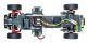 Power is transmitted from the rear mounted motor to the front wheels via a propeller shaft that runs down the side of the MF- 01X. Gearboxes are integrated into the monocoque for a sturdy and easy-to-assemble structure.