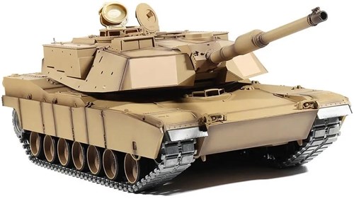Heng Long M1A2 Abrams fås i flere varianter. Nogle af billederne kan derfor afvige lidt fra produktet. Det er version 3918-1 standard, der leveres her. Dette kommer med justerbar remspænding og solide ophængsarme til metalbæltehjulene. Bæltehjulene og selve remmen er af plast. Dette kan opgraderes separat.Specifikationer